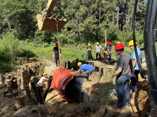 爭分奪秒搶維修,連夜奮戰保供水。在園藝場供水搶修現場,人工、機械通力配合作業,查勘了解情況,拿出具體搶修方案。為了尋找破損位置,施工人員在現場開挖了一個直徑五六米,深數米的大坑。在搶修過程中,施工人員不怕夏季的炎熱,通宵輪班連續作業,克服一切困難修復受損管道,確保在24小時之內精準快速排除故障,保障正常供水。
