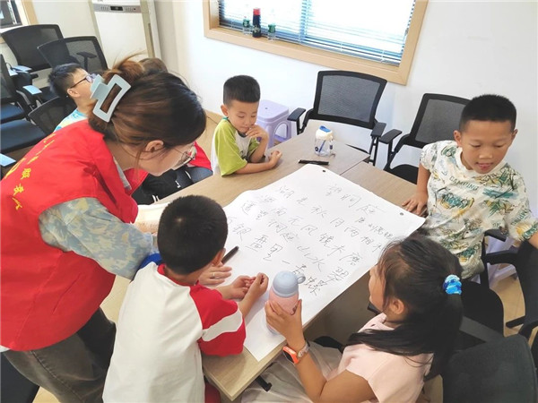 在“攜手共進 展現團隊力量”環節,通過“大風吹”游戲引出詩詞朗誦,志愿者們集體朗誦了《沁園春·雪》,帶領孩子們領略到偉人詩詞的魅力。隨后,各小組分別排練并朗誦了不同的優秀古詩詞,讓大家深刻感悟古典詩詞之美,進一步增強了傳承中華優秀傳統文化的自信。