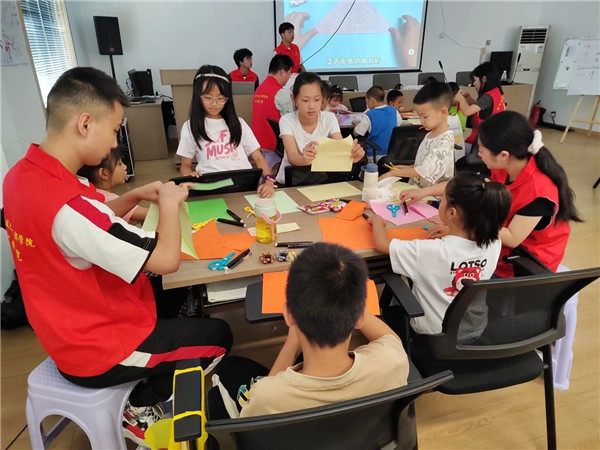 在“童年紀念冊”環節中,志愿者們引導孩子們通過折“紙飛機”和“剪紙”等手工活動,了解了紙的歷史、種類、用途及環保意義,不僅培養了動手能力,還加深了對傳統文化的熱愛和尊重。在志愿者們的引導下,孩子們剪出了形態各異、色彩斑斕的圖案,每一張剪紙都凝聚了他們的心血和汗水。
