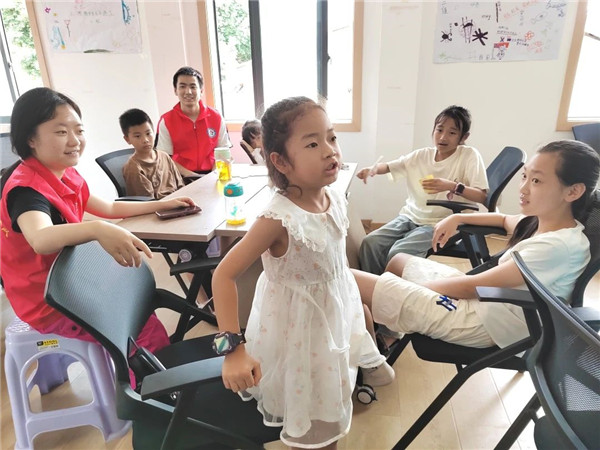 在“激發潛能 提升興趣”環節,工作人員播放了多省方言動畫視頻,并通過“傳秘密口令”游戲鍛煉了組員的普通話能力?;顒蝇F場氣氛活躍,孩子們對方言的多樣性和普通話的重要性有了更深刻的認識。有的孩子表示,以前總覺得普通話就是說話的一種方式,在參加活動后才發現,普通話不僅是一種語言工具,更是一種文化的傳承和表達。