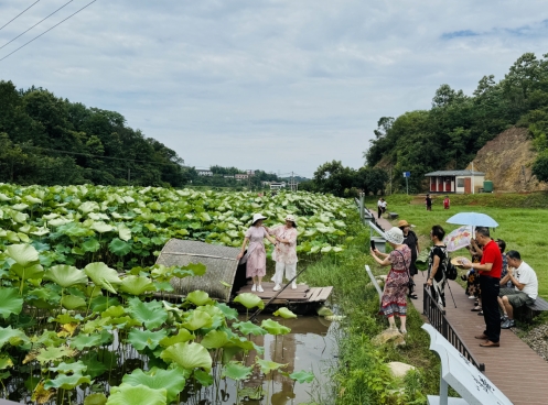 蓮文化廣場位于蒸湘區雨母山鎮枇杷塘組(原周敦頤廣場),七月如約而至,雨母山風景區的十里荷塘蓮花迎來盛開期,成片的蓮葉上蓮花競相綻放,吸引許多市民前來賞蓮。蓮文化廣場上“廉”宣傳教育欄間隔展開,高大的周敦頤石像肅穆矗立,游在荷塘之中,感染清廉的氛圍。(衡陽市蒸湘區雨母山景區管理處)