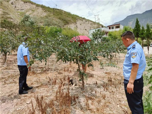 近日,文縣公安局橋頭派出所接到轄區群眾求助:“我在花椒地里發現一只罕見的動物,毛茸茸的長著長長豬嘴,人一靠近就咬,你們趕緊來看看吧?!苯拥角笾?,民警立即趕往現場開展相關處置工作。
