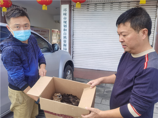 2024年1月7日上午,一熱心群眾在平樂古鎮一村落撿拾一只無力飛行受傷的野生動物,疑似鷹。接到報警后,民警立即趕赴現場,發現動物腳上有明顯外傷,無自主飛行能力,經仔細辨認,確認其為國家二級保護動物雕鸮,隨后與群眾一起將對該動物移交至規自部門作救助處理。