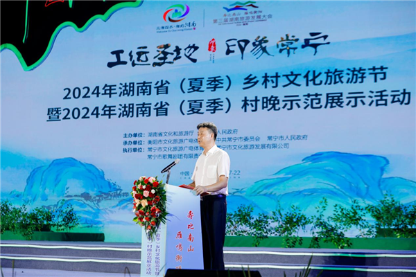 由湖南省文化和旅游廳、衡陽市人民政府主辦,衡陽市文化旅游廣電體育局、中共常寧市委員會、常寧市人民政府承辦的2024年湖南?。ㄏ募荆┼l村文化旅游節暨2024年湖南?。ㄏ募荆┐逋硎痉墩故净顒?月22日在衡陽常寧火熱開幕。