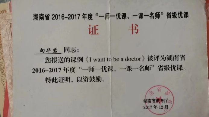 花園鎮西中是一所九年一貫制學校。向華君來到這里,開始是教小學英語,2019年進學校初中部,2020年開始擔任英語教研組組長、初中班班主任,帶九年級畢業班英語,現在帶八年級班主任。懷著對教育事業的無限熱忱,始終堅守在教學一線,將青春與汗水揮灑在這片教書育人的土地上。她擁有較高的政治思想覺悟,時刻以黨和國家的教育方針為指引,認真貫徹落實各項教育政策。她熱愛祖國,堅定不移地擁護中國共產黨的領導,嚴格遵守法律法規,積極主動地參加各類政治學習活動。在個人利益與集體利益的權衡中,她總是毫不猶豫地選擇后者,一直是一朵盛開的鮮花,將奉獻精神貫穿于工作的始終。在日常的教育教學工作中,向華君展現出了令人欽佩的敬業精神。十多年來,她工作兢兢業業、勤勤懇懇,每天早早地來到學校,精心準備每一堂課。為了讓學生更好地理解和掌握知識,她刻苦鉆研業務,不斷地探索創新教學方法。她深入研究教材,結合學生的實際情況,制定出具有針對性的教學方案。課堂上,她善于運用生動有趣的例子和形象直觀的教具,激發學生的學習興趣,讓原本枯燥的知識變得生動有趣。課后,她耐心地為學生答疑解惑,關心學生的學習和生活情況,與學生建立了深厚的師生情誼。她的教學效果顯著,所任教的初中英語成績斐然。她注重培養學生的語言運用能力和思維能力,通過豐富多樣的教學活動,如英語角、演講比賽等等,為學生營造了良好的英語學習氛圍。在縣質量監測、九年級畢業會考中,她所教班級的英語成績多次名列前茅,進入全縣英語教師前 20%。這樣的成績并非偶然,而是源于她日復一日的辛勤付出和對教學工作的精心打磨。向華君不僅在常規教學中表現出色,還積極參與各類教學比武活動,在與同行的交流切磋中不斷提升自己的教學水平。2016年 10月,在邵陽市中小學課堂教學改革教學比賽全市決賽中,她憑借獨特的教學理念和精彩的課堂展示,榮獲小學英語學科一等獎。同年 10月,又在洞口縣中小學課堂教學改革小學英語組縣級決賽中,以出色的表現奪得小學英語一等獎。2019年 4月,她在洞口縣第一屆中小學青年教師教學比賽小學英語學科中,憑借精湛的教學技藝摘得特等獎。此外,2017年 12月,她的課程獲得了“一師一優課、一課一名師”省級優課;2021年 12月,在湖南省集體備課大賽中學英語組獲得三等獎。