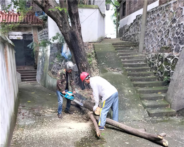 發布時間:2024-07-25 14:04:00 | 來源:中國網 | 作者: | 責任編輯:趙茜“我們這棟樓門口有顆大樹樹枝已有斷裂,對過往居民存在很大的安全隱患,希望趕緊派人來處理一下!”近日,八一街12345熱線接到了呂家沖社區居民張女士的求助電話。接到工單后,八一街立即組織相關部門、社區人員進行現場勘察,經過一個多小時的安全作業后,工作人員將斷裂枝干全部砍除,解決了居民的擔憂。經回訪,張女士對八一街的辦事效率表示非常滿意,并感謝12345熱線的幫助。