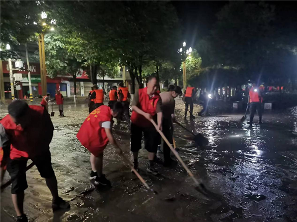 一下午,查災救災組織生產自救。水位下降后,街道迅速組織黨員干部查災排險,現場查看災情、人員安置情況,協助群眾迅速開展生產自救。目前經初步排查,洪峰過境導致5大戰區6個社區受損,8個車庫、11個地下室、233戶商鋪、41間房屋進水,院落及巷道內澇7處,多處電力損壞。荷葉壩村、靈巖寺村、東關社區、新城社區、北街社區、南街社區正組織黨員干部、志愿者、公益崗、群眾清理道路、市場積水淤泥,逐步有序恢復生活秩序。