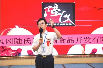 陸氏星食品董事長陸德坤激情推介鋅硒食品。