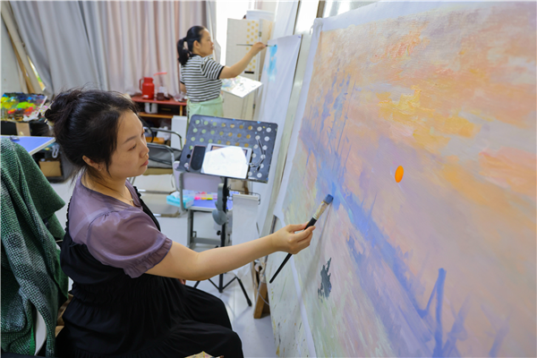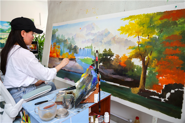 現在,來綠澤畫院欣賞油畫作品,購買油畫已經成為青島西海岸新區一個重要文旅業態和文旅重要亮點。據了解,自油畫家解中才2003入駐達尼畫家村創辦綠澤畫院創作銷售油畫以來,入駐達尼畫家村的高級職業畫家達到30多人,畫師600多人。當地有藝術天賦的農民在綠澤畫院的引導下走進畫院,被畫院培養成畫師,成為油畫創作的行家里手。如今,這里創作的油畫作品俏銷歐洲和北美20多個國家和地區,國內銷售實現了各個省份全覆蓋。如今,落戶在達尼畫家村的油畫家和畫師們專心創作,油畫銷售人員全力以赴直播銷售油畫,三個直播賬號每天繁忙有序,銷售成效顯著。