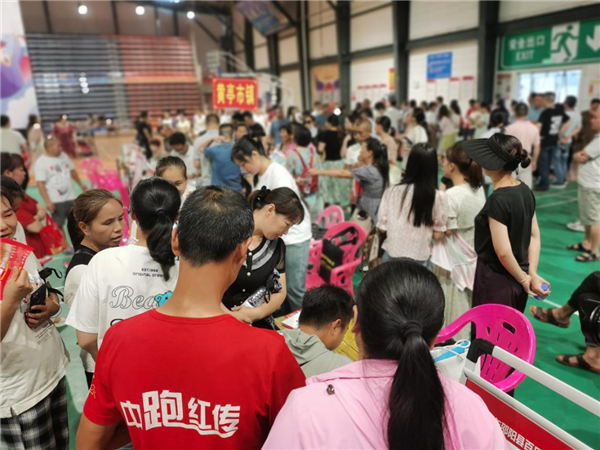 活動現場人頭攢動、求職者絡繹不絕,縣周邊鄉鎮求職者由專人帶領有序入場。用工企業通過招聘展板、專人接待等形式,全方位展示企業的文化、薪資待遇和崗位要求。求職者積極與企業工作人員現場互動,根據自身情況篩選出合適的崗位。