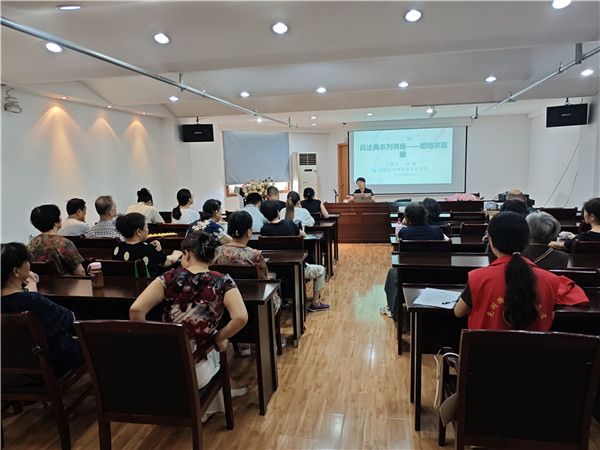 講座中,劉律師首先介紹了《中華人民共和國民法典》婚姻家庭編的基本內容和重要意義。她指出,《中華人民共和國民法典》婚姻家庭編是我國民事法律體系中的重要組成部分,對于保障婚姻家庭關系的穩定和諧、維護社會公共利益具有重要意義。接著詳細講解了婚姻家庭編中涉及包括結婚、離婚、夫妻財產分割、子女撫養等方面的內容,通過生動的案例和通俗易懂的語言,讓居民們對這些法律條款有了更加深入的了解。劉律師還將生活事例歸納亮點、解讀要點,并進行了現場答疑解惑,得到了居民的一致好評。(丁點迪)