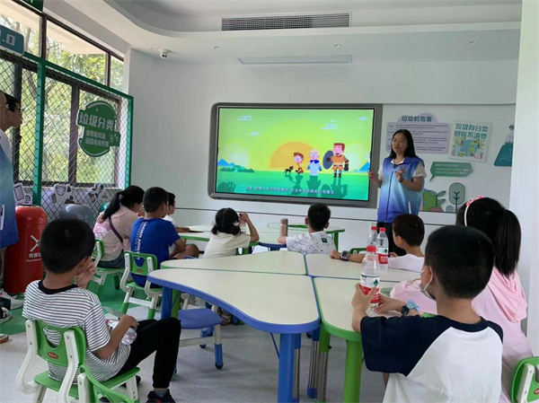 在鯨靈講解員的帶領下,親子團成員們興致勃勃地走進了科普教育區、互動游戲區以及“鯨靈回收循環巴士”這三大專區。首先,他們共同觀看了關于垃圾分類的宣教電影,通過生動的畫面和情節,讓孩子們對垃圾分類有了初步的認識。接著,講解員詳細介紹了展板和墻繪上的各種垃圾分類知識,讓家長們也受益匪淺。