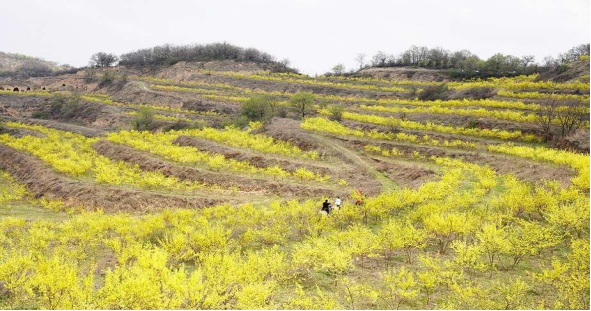 (圖為:秦嶺鎮麻山頭村千畝連翹基地)