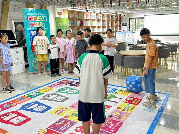 隨后是垃圾分類飛行棋小游戲,孩子們分組競技,在歡笑中投擲骰子,跳躍于棋盤之間。每當遇到垃圾分類相關的問題,孩子們都爭先恐后地回答,展現出對環保知識的濃厚興趣。游戲不僅讓孩子們在玩樂中鞏固了垃圾分類的知識,還增強了他們的團隊協作能力和競爭意識。
