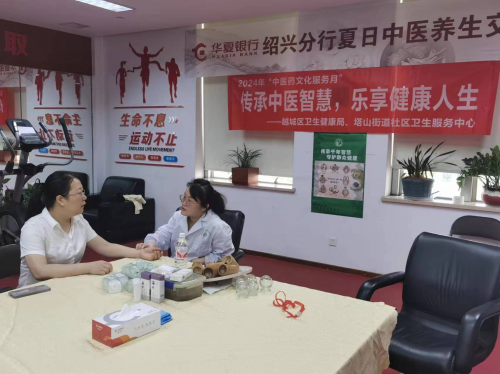 “紅七月,服務月”—中醫藥文化進銀行義診活動在華夏銀行紹興分行舉行