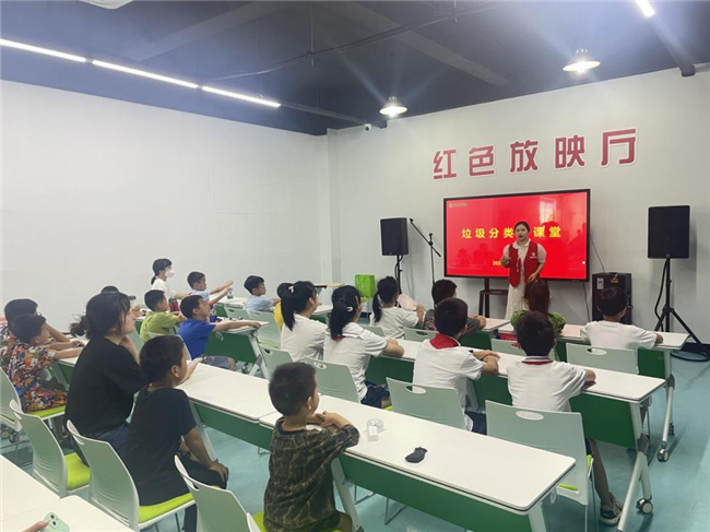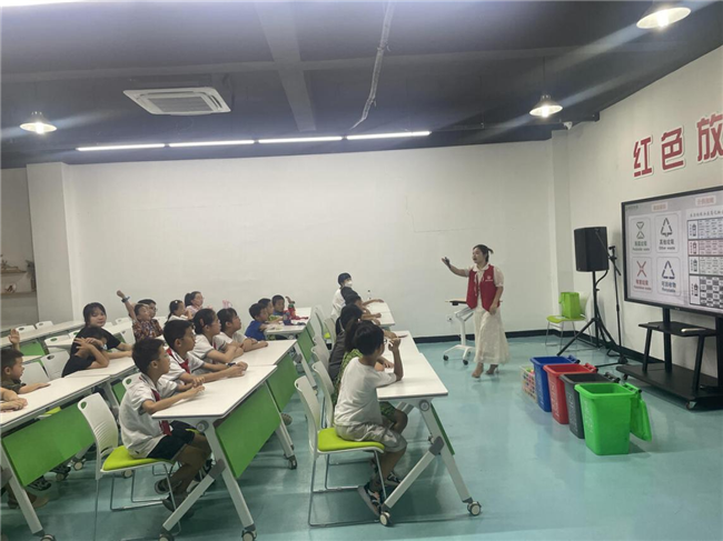 “可回收物要放入藍色垃圾桶,比如:塑料、紙箱等;有害垃圾放入紅色垃圾桶,比如:電池、燈管和過期藥品等;易腐垃圾放入綠色垃圾桶,比如:果皮、剩菜剩飯等;其他垃圾則是要放入灰色垃圾桶……”活動現場,志愿者化身為“垃圾分類小老師”,通過生動形象的語言和直觀形象的教具,講解了垃圾分類的標準,以及垃圾分類對節約資源、保護環境的重要作用,同時,引導青少年們正確區分四類垃圾。小朋友們還就生活中遇到的垃圾分類問題展開提問,志愿者耐心地逐一解答,一場富有教育意義的課堂,在孩子們心中種下一顆顆節能環保的綠色種子。