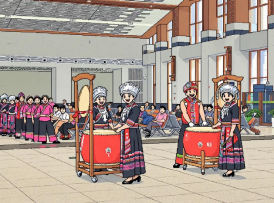 激昂的鼓點驟然在龍山北站寬敞明亮的候車大廳響起,身著土家族盛裝的表演者翩然而出,國家級非遺項目土家族擺手舞的韻律瞬間點燃了現場。這座以“孔道驛站,土風苗韻”為設計靈魂的車站,已成為古老土苗文化擁抱現代速度的生動窗口,也是武陵山區發展新篇章的強勁脈搏。