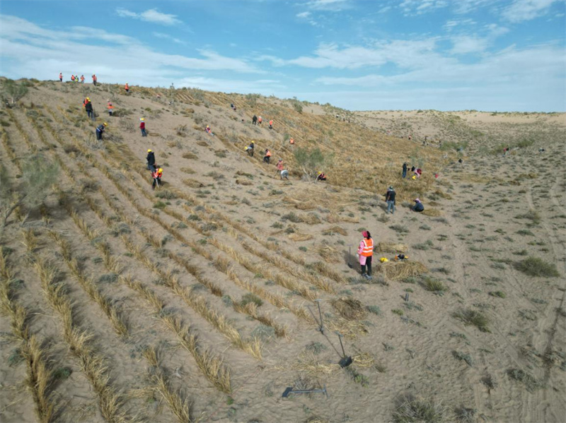 開工儀式后,項目方同步召開技術交底會,向勞務隊明確核心要求:施工需嚴格遵循“固沙先行、植綠跟進”流程,稻草沙障必須在10月底前完成鋪設——因11月當地進入凍土期,低溫將導致施工停滯;材料需符合耐風蝕、抗老化標準,灌木苗栽植前需經浸泡促根處理,確保成活率;質量管理中,沙障鋪設平整度、苗木定植深度等關鍵指標需全程留痕驗收。