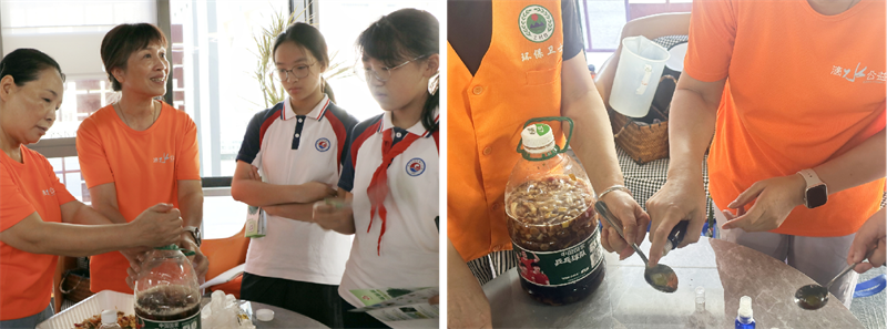 實用的環保酵素課堂上,老師細致講解環保酵素清潔、堆肥等多種用途,并現場演示制作流程。生活中看似無用的果皮菜葉,轉眼成為環保寶藏,讓環保理念真正融入日常。