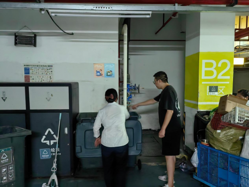 此前,龍湖西溪天街公寓已通過垃圾分類宣傳引導、優化桶點布局等舉措,讓居民分類投放習慣逐步養成,但垃圾堆積問題的反復出現,讓工作人員意識到“后端清運流程”存在優化空間。工作人員通過觀察發現:每當保潔人員將滿溢的分類垃圾桶拉走清運時,若未能第一時間在原位置補放空桶,剩余的單個垃圾桶很快就會因承載量不足而出現垃圾外溢、堆積的情況,尤其在早晚居民投放高峰時段,問題更為明顯?!翱此剖切〖毠?,卻直接影響垃圾分類的整體效果和居民體驗?!苯值览诸惞ぷ飨嚓P負責人表示,必須從規范清運流程入手,堵住這一“斷點”。