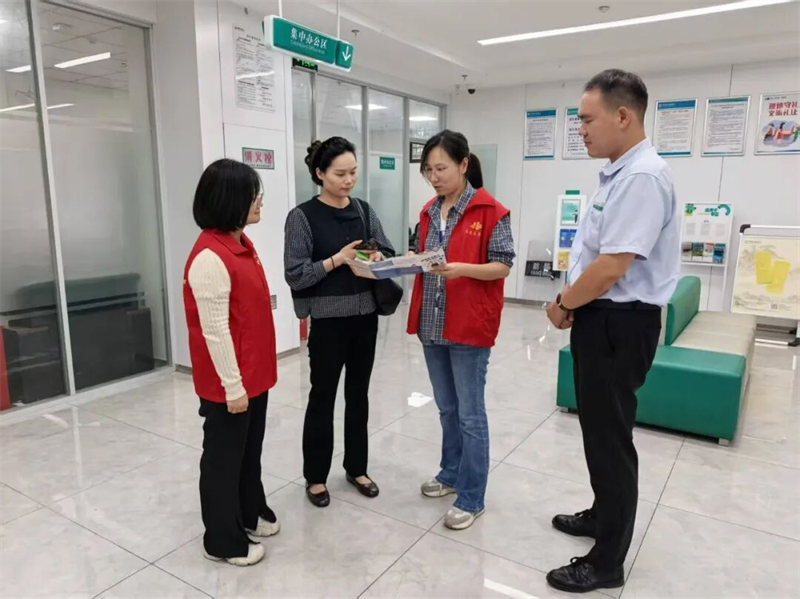 在“金融日”當天,財政局工作人員在農業銀行春暉路支行開展網絡安全普法宣傳,結合真實案例向辦理業務的群眾講解網絡詐騙套路、釣魚網站識別技巧、支付安全注意事項等實用知識,強化“不輕信、不透露、不轉賬”的防范意識。