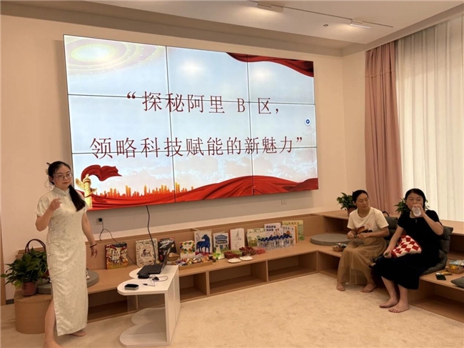 活動中,黨員們在阿里工作人員的引導下,參觀了B區數字化辦公空間與智能生態展廳。通過互動式展陳與場景化演示,親身體驗了阿里云智能技術、釘釘數字化辦公平臺及天貓精靈未來生活場景,直觀感受了人工智能、大數據在提升工作效率、優化用戶體驗中的關鍵作用。