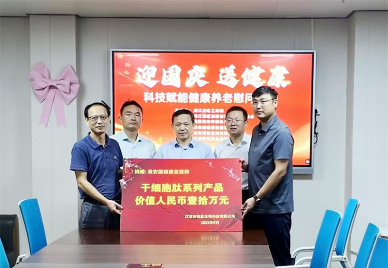 活動現場,民建機關四支會員單位江蘇活性肽生物科技有限公司率先踐行社會責任,向淮安國信康復醫院捐贈了價值人民幣壹拾萬元的干細胞肽系列產品,以實際行動為老年群體的健康貢獻力量。干細胞肽作為生物科技領域的創新成果,在健康養護等方面有著積極作用,此次捐贈也體現了科技賦能健康養老的理念,希望借助科技的力量,為老年朋友的健康保駕護航。
