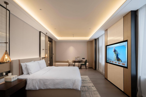 如果想要喝瓶水,酒店服務機器人會在接收需求的第一時間進行派送,而且,電視還能實時顯示機器人的位置,讓住客隨時了解服務進度。不僅如此,在機器人送到房間時,電視還能同步提醒住客取物。這種聯動服務,既減少了人工成本,又提高了服務的及時性和準確性,讓住客感受到高效便捷的服務。
