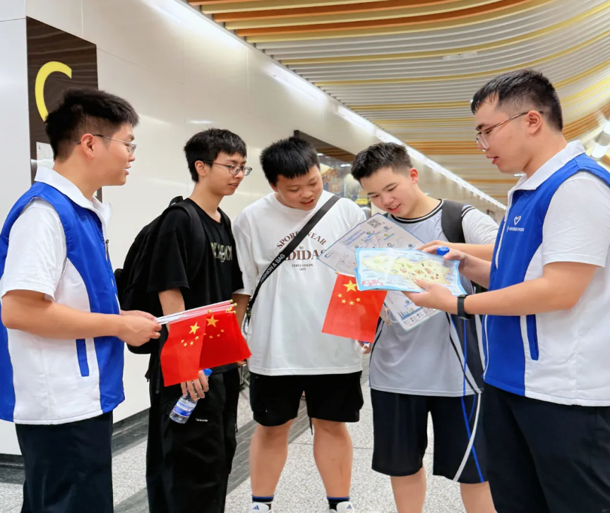 在機投橋站內,“藍馬甲”志愿者們手持世運會宣傳資料,主動向乘客介紹賽事賽程,還熱心協助解決購票、換乘等出行問題。他們在站廳與站臺間凝聚服務暖流,將對世運會的期待與出行的便利輕輕送到每位乘客身邊。