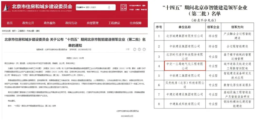 發布時間:2025-09-28 13:36:12 | 來源:中國網 | 作者: | 責任編輯:吳一凡近日,經北京市住房和城鄉建設委員會審核評定,正式認定中交一公局電氣化工程有限公司為“十四五”規劃期間北京市智能建造領軍企業(第二批),標志著電氣化公司在專業型“城市道路及軌道交通工程數智供配電”領域,處于領先地位。