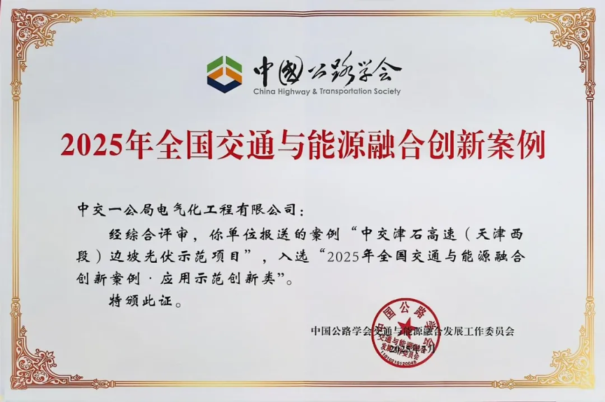 電氣化公司通過使用模擬軟件和實地測試,在津石高速光伏工程、重慶高速光伏工程、貴州高速光伏工程等進行光伏組件的布局優化,通過合理布置和設計光伏電池陣列的朝向和角度,實現最大化太陽能轉化效果。入選2025年全國交通與能源融合創新案例,獲得零碳服務區認證。