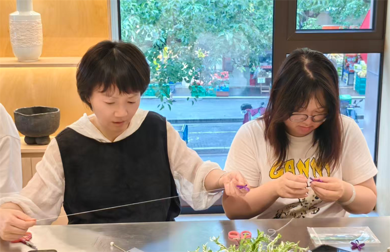 此次活動是“傳統技藝進社區”系列的重要一站,旨在通過沉浸式體驗讓青年群體成為非遺文化的“代言人”。秋分日,涼風有信;盤扣成,匠心永續。當傳統技藝遇上青春創意,當社區空間變身文化課堂,這場秋日里的文化之約,不僅讓非遺“活”了起來,更讓青年與傳統文化、生態保護“心手相牽”。正如周冰旋老師所言:“每一顆盤扣都是時光的禮物,而年輕人,正是讓這份禮物與美好環境煥發新生的使者?!保ㄉ蚣延?、許寅)