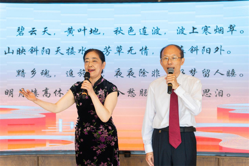 令人難忘的是《憶秦娥·婁山關》的跨界演繹。夏秀蘭的吟誦與鹽坊京劇社的演唱相得益彰,將革命詩詞的豪邁與戲曲的韻致巧妙融合,成為整場活動的一大亮點。蔡紅霞不僅朗誦《岳陽樓記》,更以一曲昆曲《蘇幕遮》展現傳統藝術的柔美與深邃。