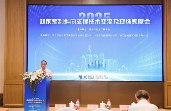 發布時間:2025-09-30 14:31:45 | 來源:中國網 | 作者: | 責任編輯:吳一凡2025年9月26日下午,由紹興市巖土工程學會主辦,浙江省自然資源集團空間信息有限公司、中海宏洋紹興公司、浙江瑞巖建筑科技有限公司共同承辦的“超前預制斜向支撐技術交流及現場觀摩會”在紹興順利召開。紹興市住房和城鄉建設局工程處處長龐亮,原市建管局副局長張煜,紹興市柯橋區質監站胡立鋒,俄羅斯自然科學院外籍院士、工程地質專家、巖石力學專家、紹興文理學院教授伍法權等政府部門、行業專家、企業代表等參會,共同探討最新工程技術應用。中海宏洋紹興公司助理總經理蔡輝參加會議。