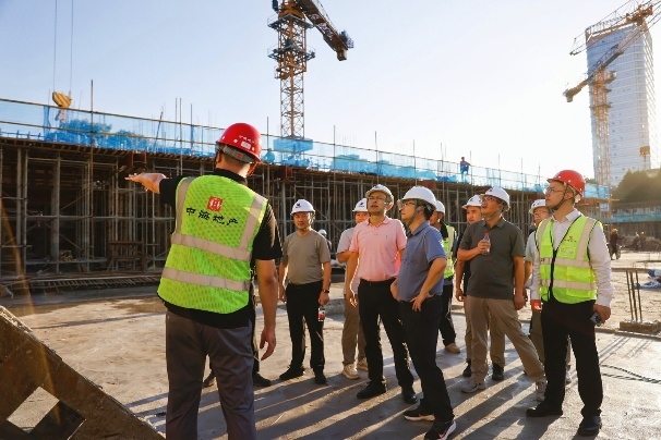 會后,參會嘉賓集體前往中海宏洋紹興公司越湖雲起項目現場,實地觀摩超前預制斜向支撐技術的實際應用情況。中海越湖雲起項目作為紹興地區首批系統引入該技術的住宅工程,展現了中海地產一貫的高標準施工理念與工藝工法。通過現場講解與工藝展示,與會人員對該技術在中海項目中的高效落地與優質效果有了更直觀、深刻的認可。