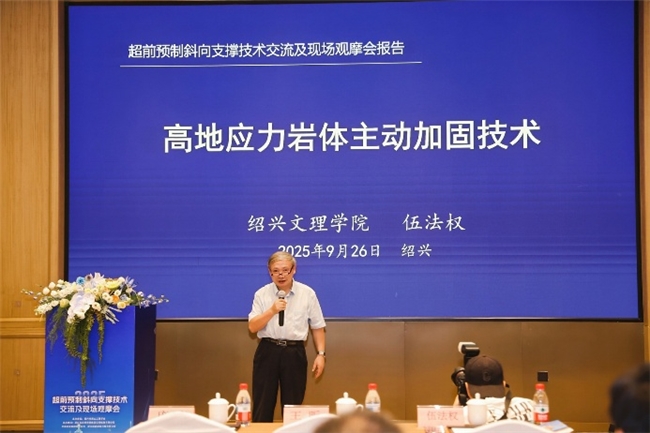在主題報告環節,俄羅斯自然科學院外籍院士、紹興文理學院教授伍法權作《高應力巖體主動加固技術》專題報告,從工程地質與巖石力學角度深入解析了高應力環境下巖體加固的技術難點與應對策略。