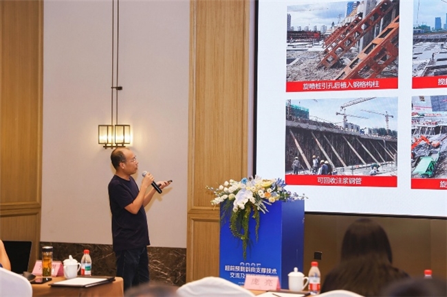 隨后,國家注冊巖土工程師、高級工程師酈灃以《超前預制斜向支撐技術與應用》為題,系統介紹了該技術的設計原理、施工流程及典型案例,并結合中海宏洋紹興公司越湖雲起項目的工程實踐,重點展示了該技術在提升結構安全性、優化施工效率及實現綠色建造方面的顯著成效。