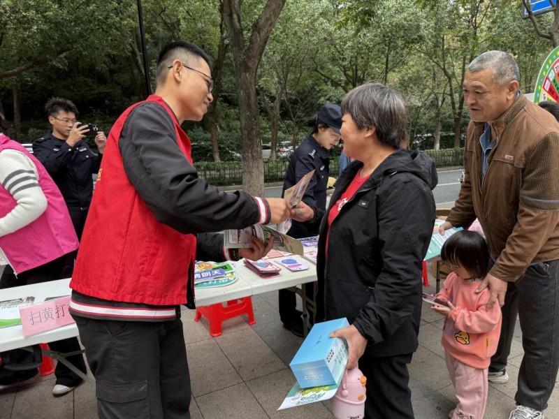 掃黃打非宣傳區,社區工作人員發放宣傳資料,耐心地向居民和小朋友們介紹“掃黃打非”的意義,引導大家遠離不良文化,共同營造健康、文明的社會環境。