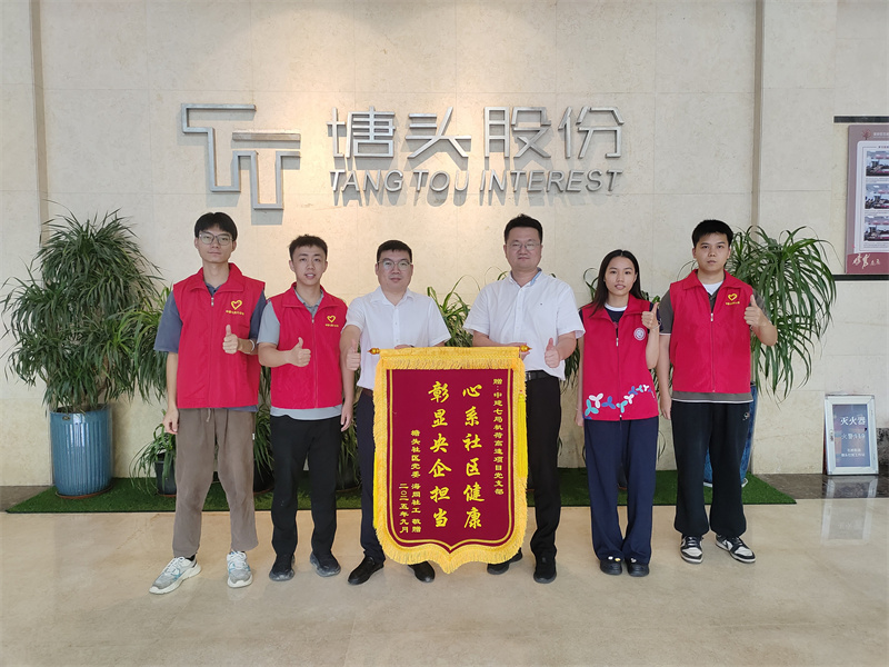 為了感謝項目為社區人居環境提升、人文關懷傳遞所作的貢獻,塘頭社區黨委、海同社工共同為項目送上“心系社區健康、彰顯央企擔當”錦旗。