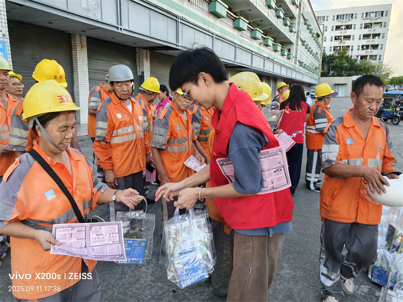 發布時間:2025-10-23 14:49:55 | 來源:中國網 | 作者: | 責任編輯:吳一凡為切實保障環衛工人身體健康,提升一線戶外作業人員的自我防護意識與能力,近日,中建七局六公司機荷高速項目聯合深圳市寶安區石巖街道塘頭社區黨委、海同社工在塘頭社區精心組織了一場面向環衛工人的基孔肯雅熱防控知識宣傳和驅蚊慰問活動,為100名環衛工作者普及防蚊滅蚊及傳染病防控知識。