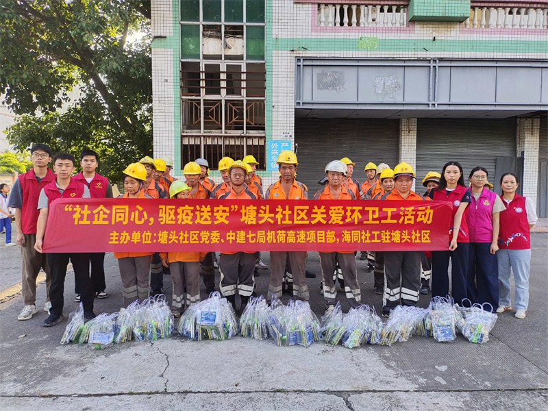中建七局六公司機荷高速項目開展“社企同心,驅疫送安”關愛環衛工人活動