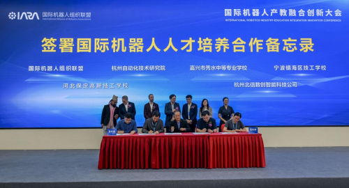 活動現場簽署了《國際機器人人才培養合作備忘錄》,國際機器人組織聯盟、杭州自動化技術研究院與多家高校和企業共同簽署合作文件,標志著產學研多方代表將深度探索企業高校聯合培養創新人才的新機制,攜手構建一個開放、協同的國際機器人人才發展創新生態。