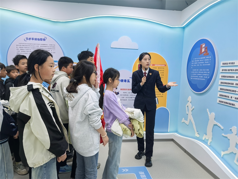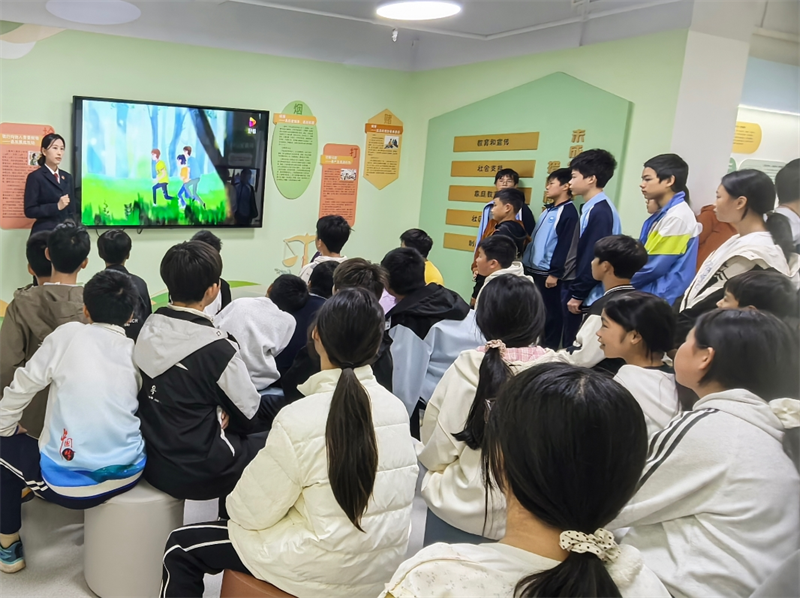活動伊始,同學們在檢察干警的引導下,有序參觀了攸縣青少年法治教育中心。展廳內豐富的圖文展板、生動的案例解析以及現代化的多媒體互動設備,瞬間吸引了所有人的目光。檢察干警用通俗易懂的語言,向同學們介紹了檢察院的職能、法律的基本概念,并結合與青少年學習生活息息相關的典型案例,深入淺出地講解了預防校園欺凌、防范網絡詐騙、抵制不良誘惑等法律知識。在互動體驗區,同學們興致勃勃地參與了法律知識搶答、法律圖畫拼圖、法治小劇場等項目,這種寓教于樂的方式,讓枯燥的法律條文變得鮮活起來,使同學們對司法程序有了更直觀、更深刻的理解。