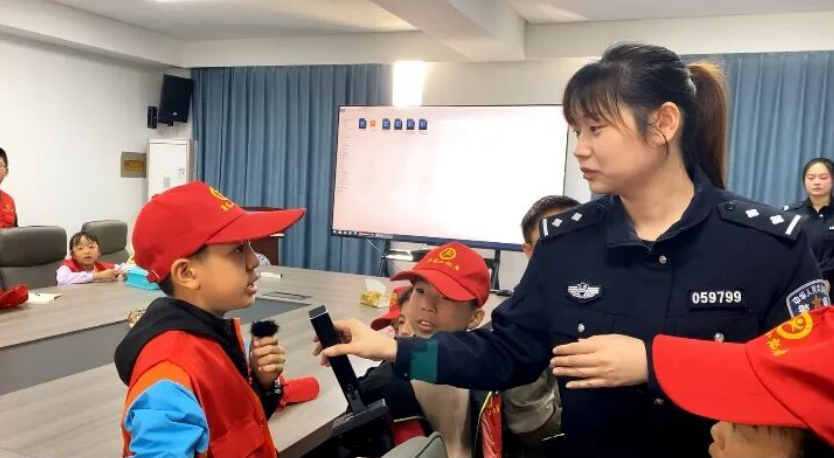 走進派出所“大腦中樞”指揮中心,屏幕上滾動的轄區監控畫面、此起彼伏的接警電話,瞬間讓小記者們凝神屏息。民警結合實時操作,細致講解接警、指令傳達、警力調度全流程。當得知民警接到警情后需以最快速度奔赴現場,孩子們忍不住發出驚嘆:“原來每一次平安守護,都是和時間的賽跑!”現場展示的“智慧警務”平臺,更讓大家直觀領略到科技賦能下,警務工作的高效精準。
