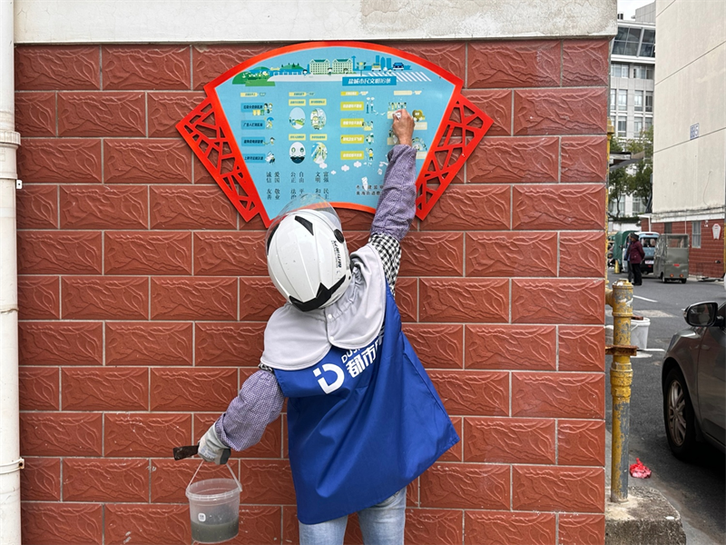 二變:空間煥顏,擦亮小區“門面”。小區的告示欄是形象的“門面”,更是居民獲取信息的“指南針”。針對北港花園告示欄被小廣告“吞噬”的問題,都市全能家政與都市城服公司聯合開展了“清癬”行動。工作人員手持鏟刀、噴壺等專業工具,耐心細致地清理著每一塊展板。