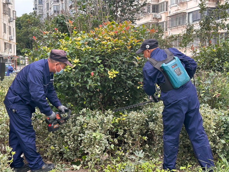 一變:綠化煥新,解了“心頭憂”。面對小區內雜亂無章的綠化,都睿物業公司迅速調集了28名園林綠化專業人員、15名保潔人員以及30余臺專業設備,展開了科學細致的修剪作業。隨著綠籬機的嗡鳴,過高過密的喬、灌木被修剪得整齊利落;保潔人員緊隨其后,將公共綠地區域內橫生的雜草和堆積多年的陳年雜物一一清運。