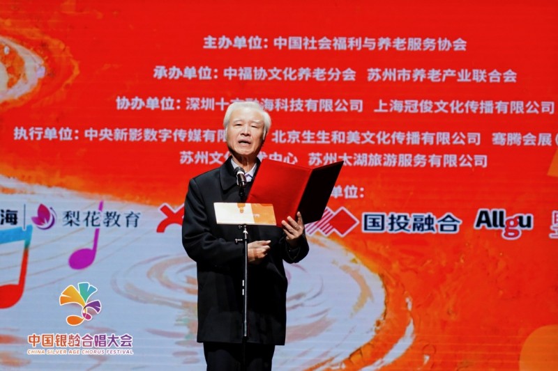 中國銀齡合唱大會藝術委員會首席專家、中國合唱協會顧問委員會主任李培智在致辭中生動闡述了合唱為老年人帶來的“健康四重奏”。他談到,合唱第一重是“快樂”,如“聲音瑜伽”般釋放壓力;第二重是“陪伴”,在合唱團中找到歸屬感;第三重是“健腦”,鍛煉記憶與思維;第四重是“氣息”,有益心肺、提升精氣神。他衷心希望中國銀齡合唱大會能持續舉辦,“一年更比一年好”。