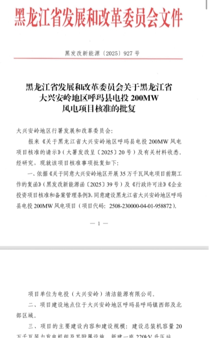 發布時間:2025-11-05 11:13:29 | 來源:中國網 | 作者: | 責任編輯:吳一凡2025年10月29日,國電投(天津)電力有限公司傳來重磅喜訊—呼瑪二期200MW風電項目成功取得核準批復,標志著國電投(天津)電力有限公司“黨旗領航百日攻堅、決戰決勝年度目標”項目發展攻堅戰“首勝”告捷。