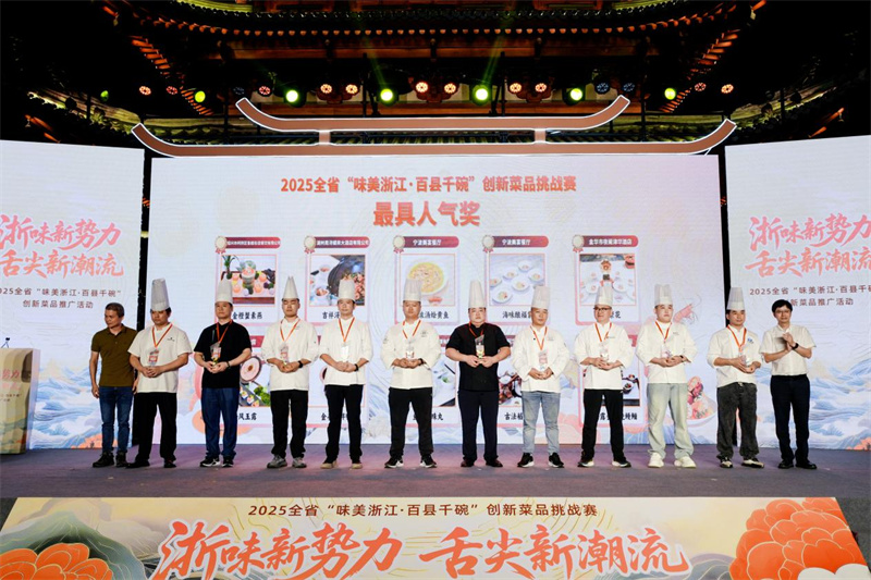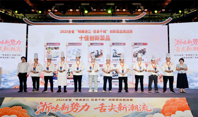 《十佳創新菜品》頒獎現場,左六為鄭建斌,麗水開放大學供圖