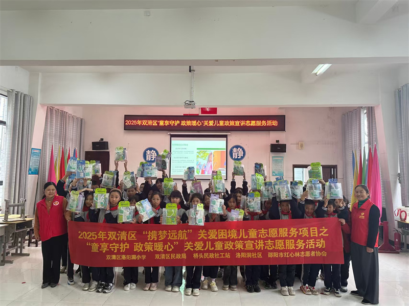 發布時間:2025-11-05 15:34:22 | 來源:中國網 | 作者: | 責任編輯:吳一凡為織密困境兒童保護網,將黨和政府對困境兒童的關懷落到實處,11月4日,湖南省邵陽市雙清區洛陽洞小學充分發揮教育主陣地作用,聯合雙清區民政局、橋頭民政社工站、洛陽洞社區及邵陽市“紅心林”志愿者協會,共同舉辦“童享守護,政策暖心”政策宣講志愿服務活動。